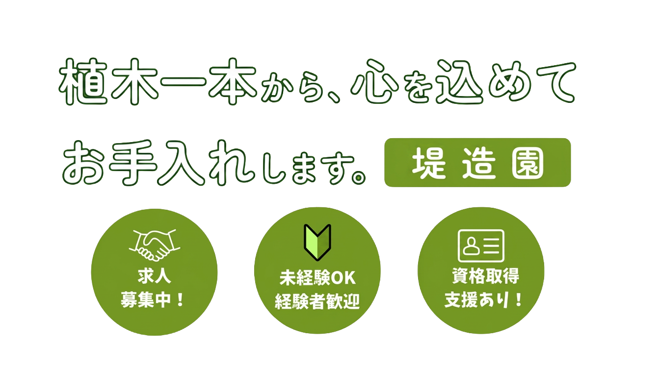 また、現在弊社では現場スタッフの求人を行なっております。経験の有無はいっさい問わず、未経験者も大歓迎です。造園業に興味をお持ちの方は、お気軽にご連絡ください。同時に、協力会社さまも募集中です。